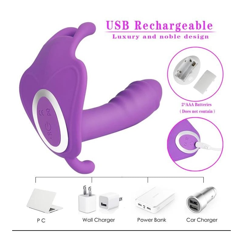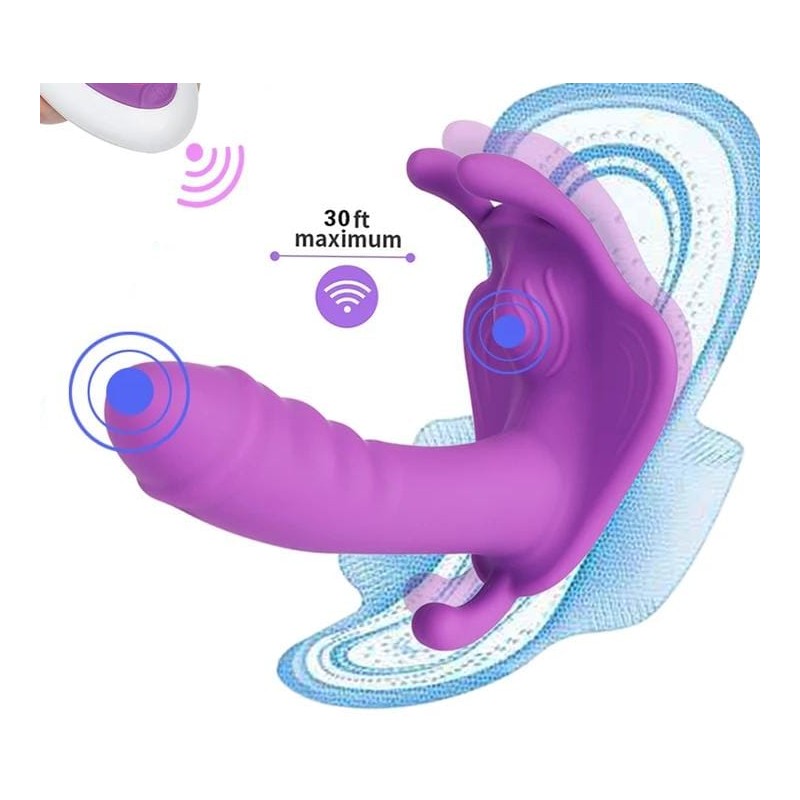 Mariposa de silicona de alta calidad, 12 cms x 3.4 de diametros, con 10 frecuencias de vibracion a distancia, estimulacion de clitoris, punto g y anal.